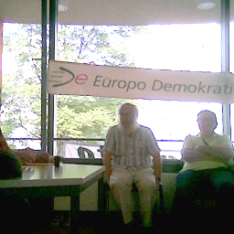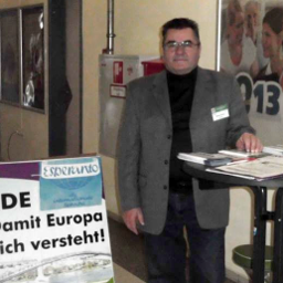 Präsent war die Europäische Esperanto-Union, der die Esperanto-Landesverbände innerhalb der EU angehören, und die auch Kontakte zur großen europäischen Politik pflegt. Thematisiert wurden Fragen zur Lage des Kontinents. E-D-E hat allerdings einen andern, einen den politischen Parteien entsprechenden Ansatz. Und wir waren ebenfalls beim Kongreß findbar. Indirekt dadurch, daß einer der nach Esperanto-Persönlichkeiten benannten Räume der "Salono Reinhard Selten" war. Unser ehemaliger Spitzenkandidat! Bei unserer E-D-E-Zusammenkunft wurde die gemeinsame Arbeit besprochen. Etwas liegt hinter uns und noch viel mehr vor uns. Ein Infotisch sorgte für ein permanentes Informationsangebot. Damit hatten die Esperantisten die Chance, den Aufruf zur Teilnahme zur Pro-Europa-Demo