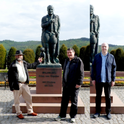 EDE Vorstandsmitglieder nach der Kandidatenwahl für EU-Wahl 2019, von links Konrad Gramelspacher (Vorsitzender), Georg Hennemann und Steffen Eitner. Denkmal in Dillenburg: WILHELM I. Prinz von Oranien (Beispiel Europäischer Geschichte) Foto © Georg Hennemann