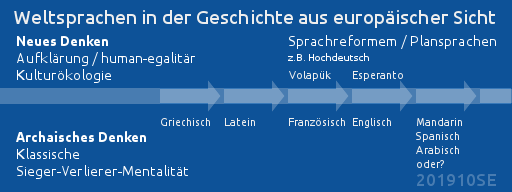 L.L. Zamenhof veröffentlichte 1887 seine leicht erlernbare neutrale Internationale Sprache unter dem Pseudonym "Doktoro Esperanto" (Hoffender). Seine Internationale Sprache wurde in kurzer Zeit "weltumgangssprachlich" zu Esperanto. (ZAM, EDE)